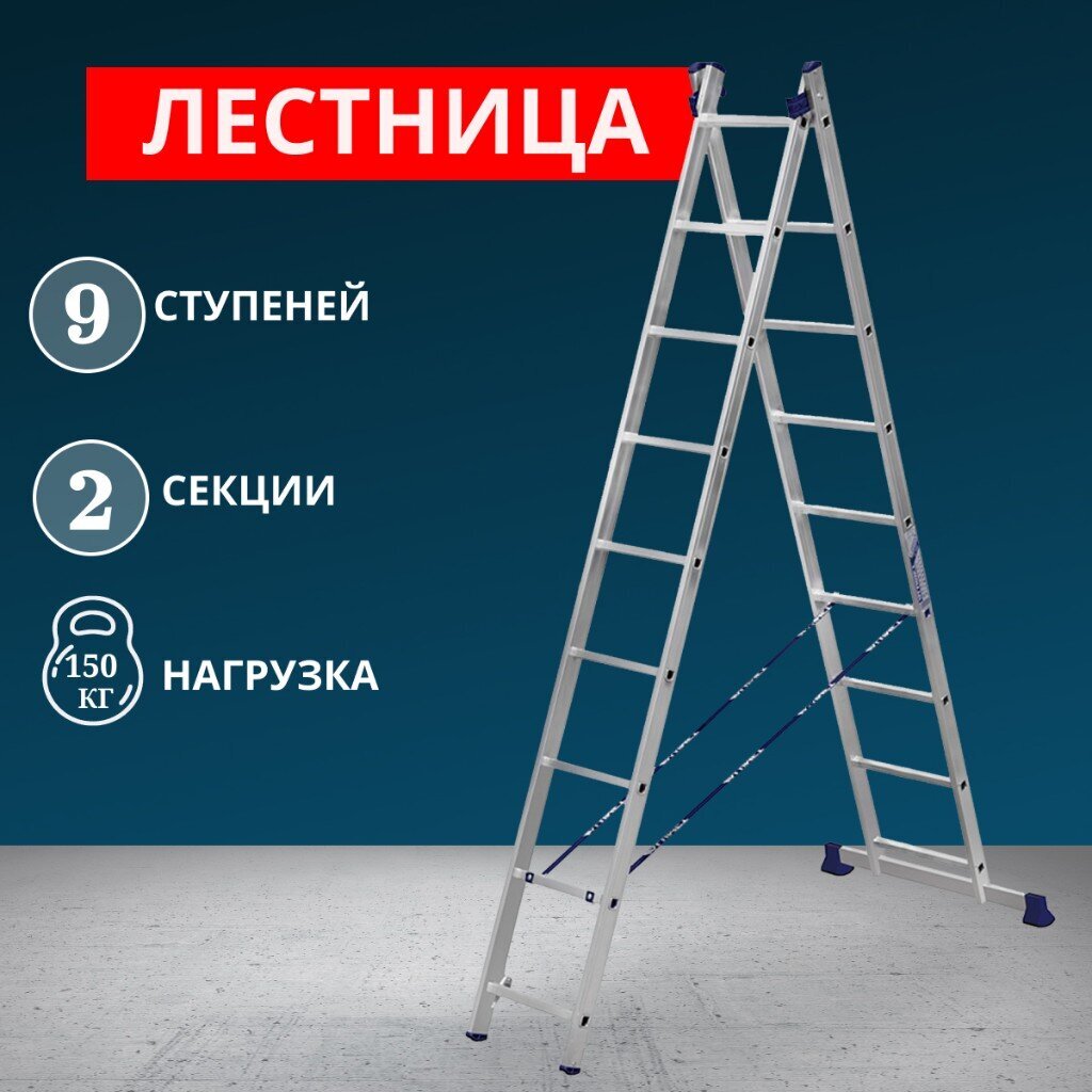 Вы можете приобрести «Лестница 2 секции, 9 ступеней, алюминий, 4.2 м, 150 кг, Alumet, H2 5209» и другие товары в нашем интернет-магазине в Таганроге по низким ценам и с бесплатным самовывозом.