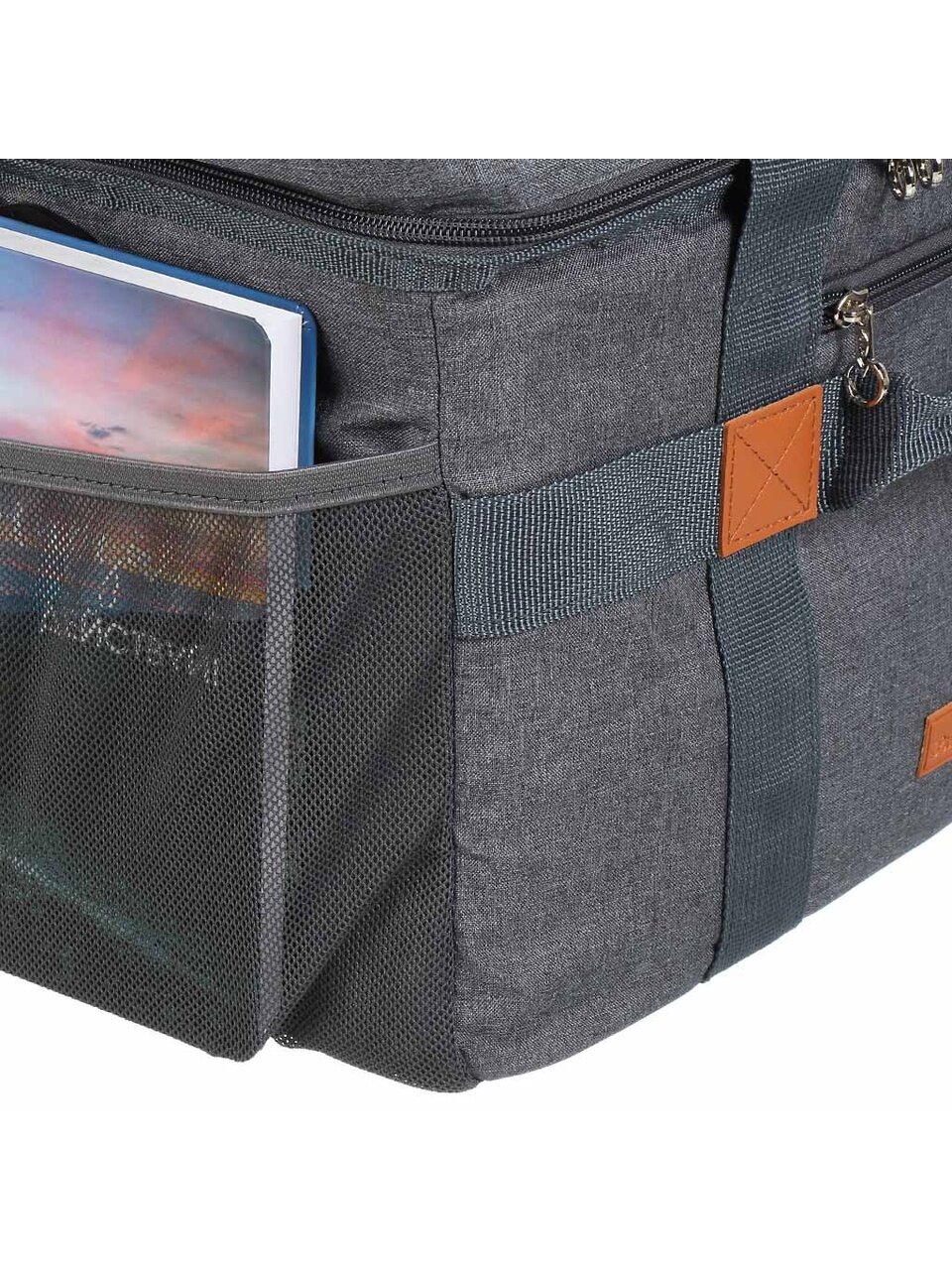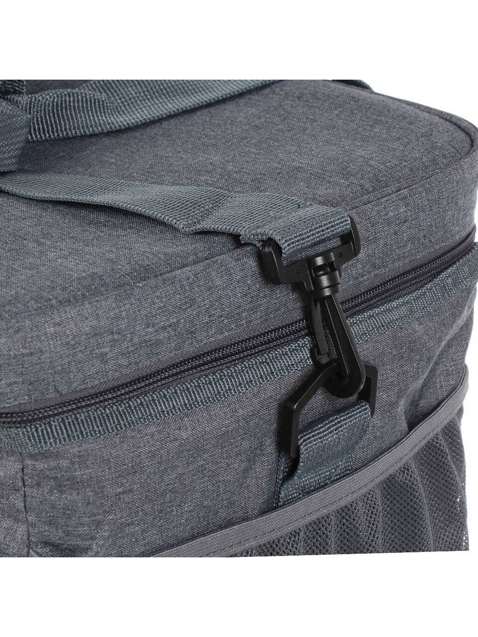 Эта термосумка изготовлена из прочного полиэстера, который обеспечивает долговечность и устойчивость к износу. Внутренний слой из алюминия эффективно поддерживает нужную температуру благодаря использованию охлаждающего аккумулятора. Квадратная форма и компактные размеры (41×25×31 см) позволяют удобно разместить все необходимые продукты и напитки, не занимая при этом много места.