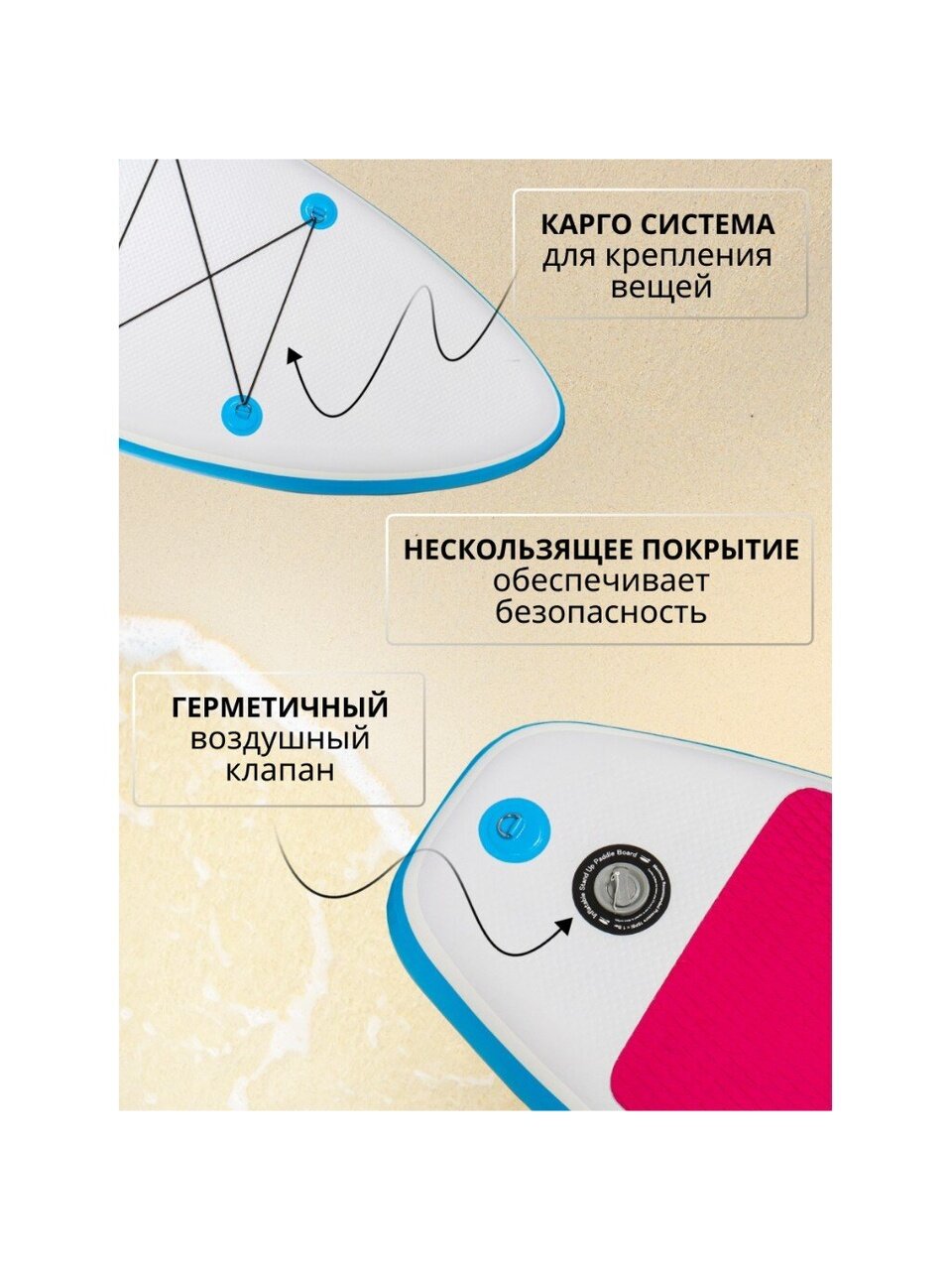 - После каждого использования необходимо очистить доску от песка и грязи мыльным раствором, после выхода из моря ополоснуть САП-борд обычной водой. Перед хранением необходимо высушить не только доску, но и комплектующие — весло, плавники, лиш.
