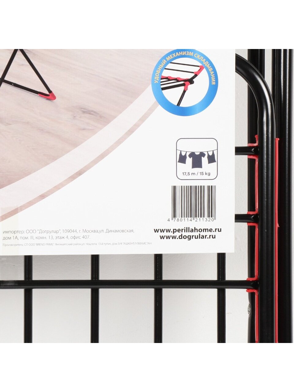 - вместительная рабочая поверхность 17,5 м для сушки большого количества белья;