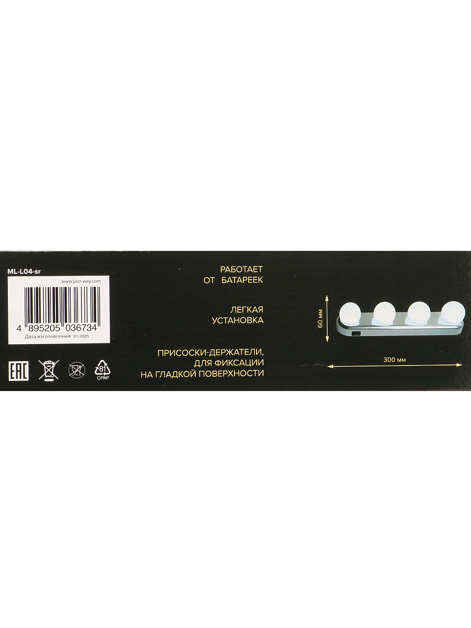 Оформите заказ на подсветку JAZZway ML-L04-s и получите функциональный аксессуар с гарантией 12 месяцев. Удобная доставка, честная цена, проверенный бренд — сделайте ваш уход за собой комфортнее уже сегодня!