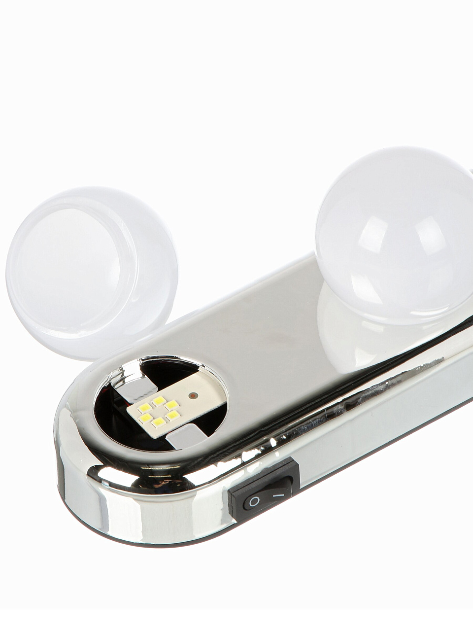 Светильник устанавливается на зеркало или любую гладкую поверхность с помощью присосок — инструментов и сверления не требуется. Работает от 4 батареек AA (не входят в комплект).