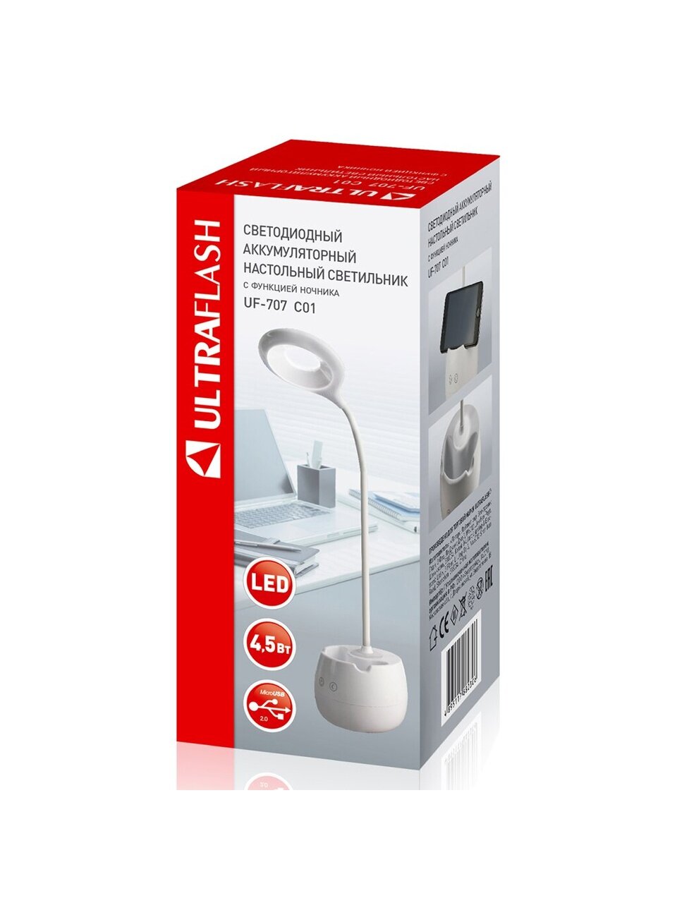 Вы можете приобрести «Светильник настольный с пеналом, 4.5 Вт, белый, абажур белый, Ultraflash, UF-707 С01, 13558» и другие товары в нашем интернет-магазине в Орле по низким ценам и с бесплатным самовывозом.