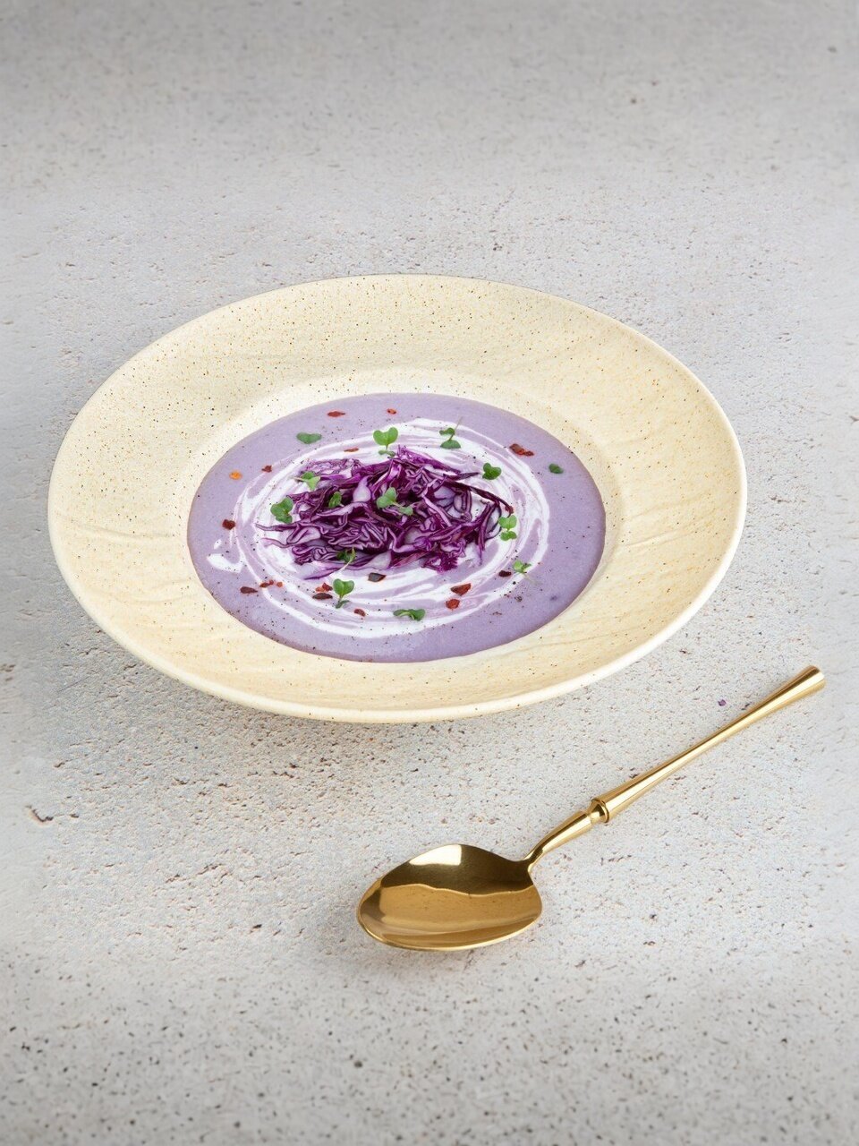 Тарелка рассчитана на 350 мл, диаметр — 25,5 см. Глубокая форма удобна для супов, рагу и салатов.