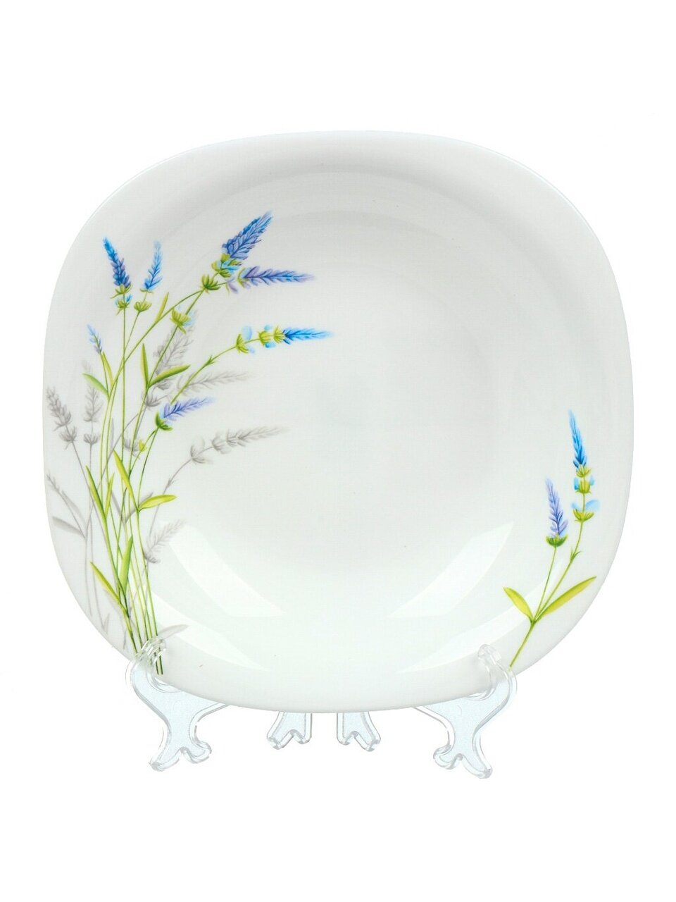 Тарелка квадратной формы, диаметр 21 см, объём 675 мл — оптимально для порционных супов и салатов.