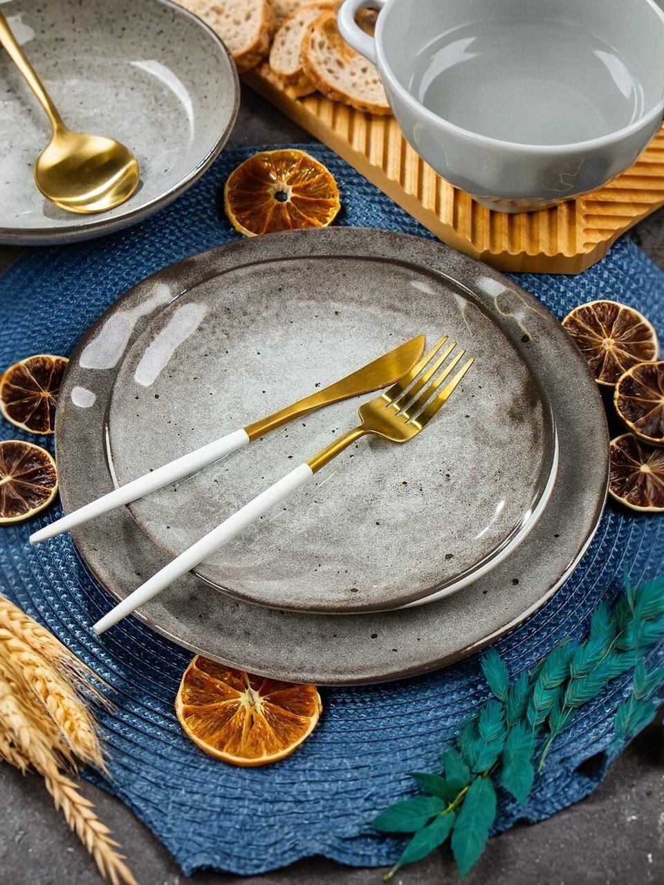 - Уникальный дизайн: современная керамика с эффектом камня и крапинкой, подчёркивающая индивидуальность вашей сервировки