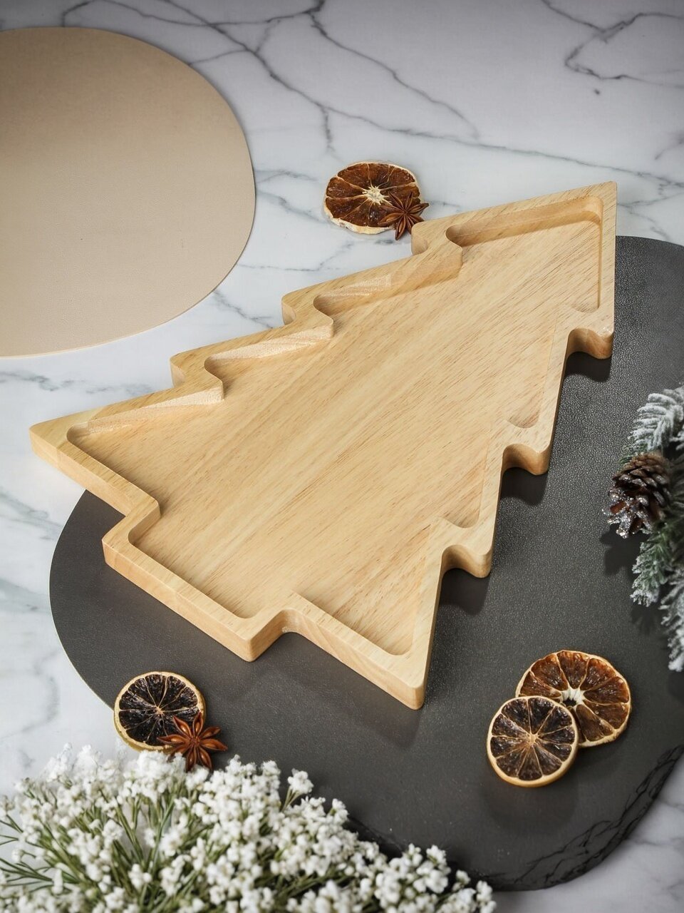 Сервировочная тарелка из акации в форме ёлки 40х28 см — стильный акцент для праздничного стола, который подчеркнёт атмосферу уюта и станет запоминающимся элементом сервировки.