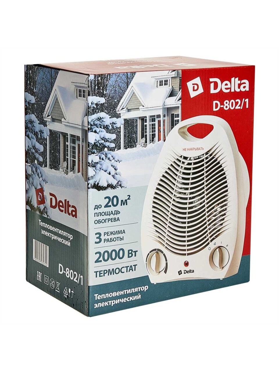 Тепловентилятор Delta D-802/1 — быстрый обогрев до 24 м², надёжная защита от холода, компактный размер и экономия электроэнергии для дома и дачи.