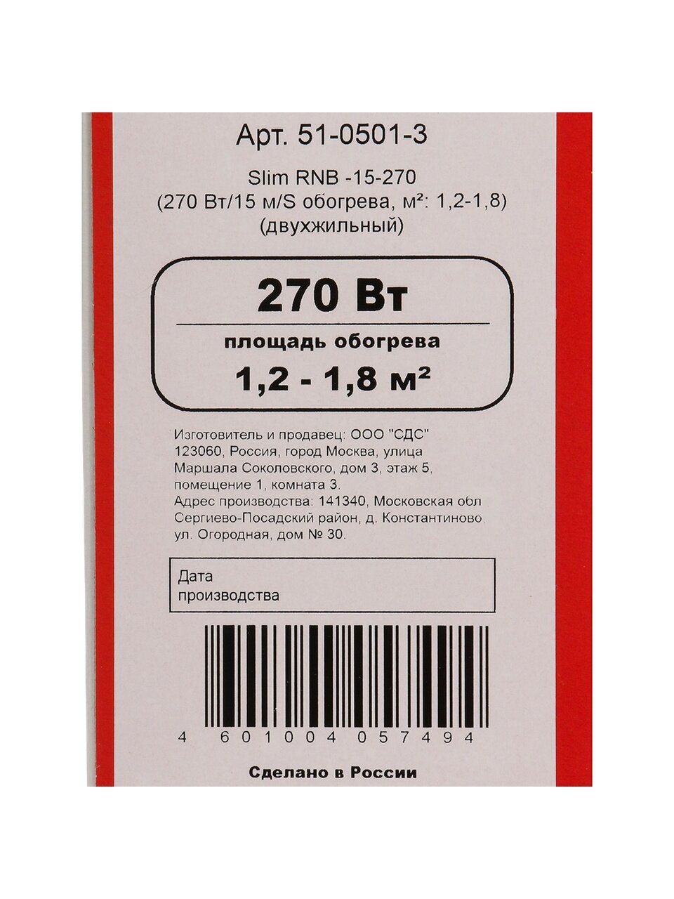 Тёплый пол Slim RNB-15-270: надёжное и эффективное решение для обогрева пола 1,2–1,8 м² — монтаж без стяжки, экономия времени и средств.