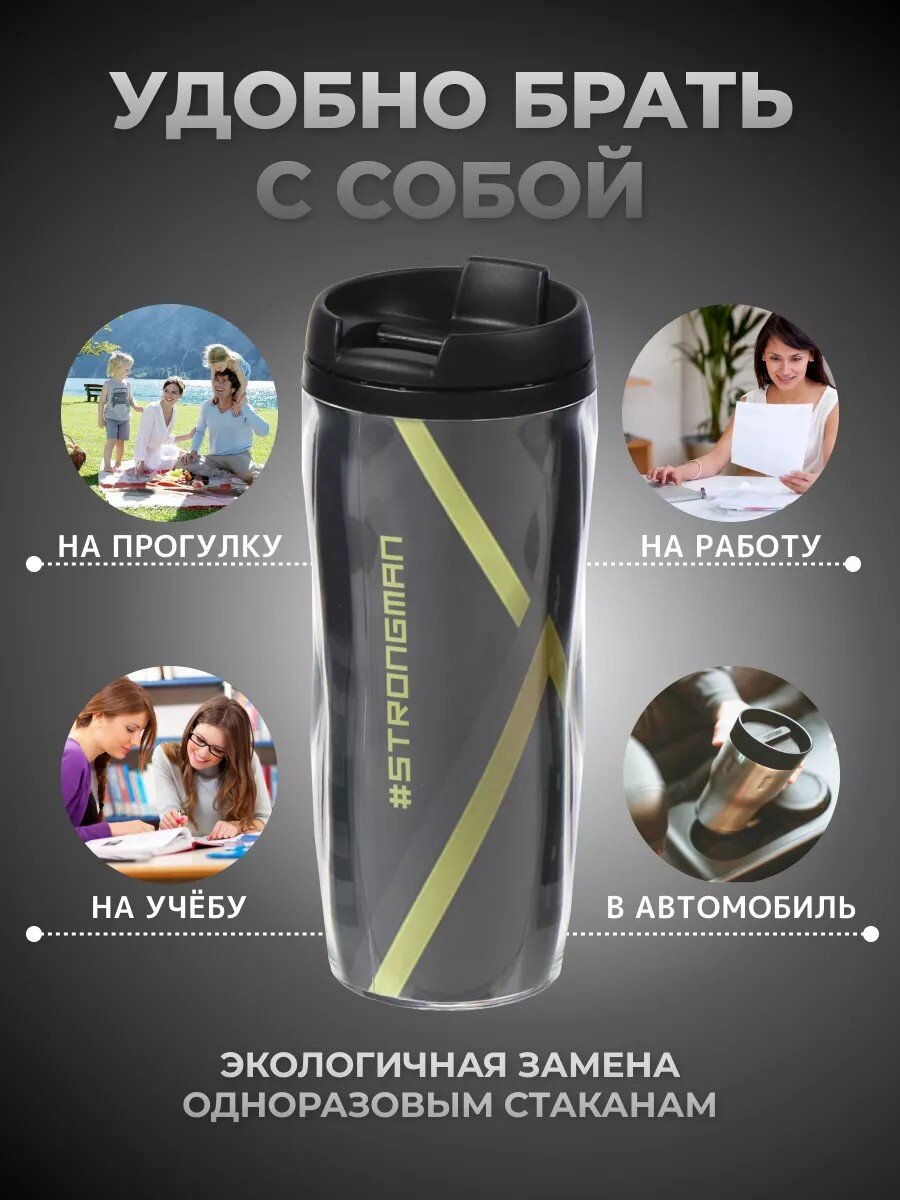 - Уникальное преимущество — легкая и герметичная термокружка из пластика с рисунком, удобно брать с собой в дорогу.