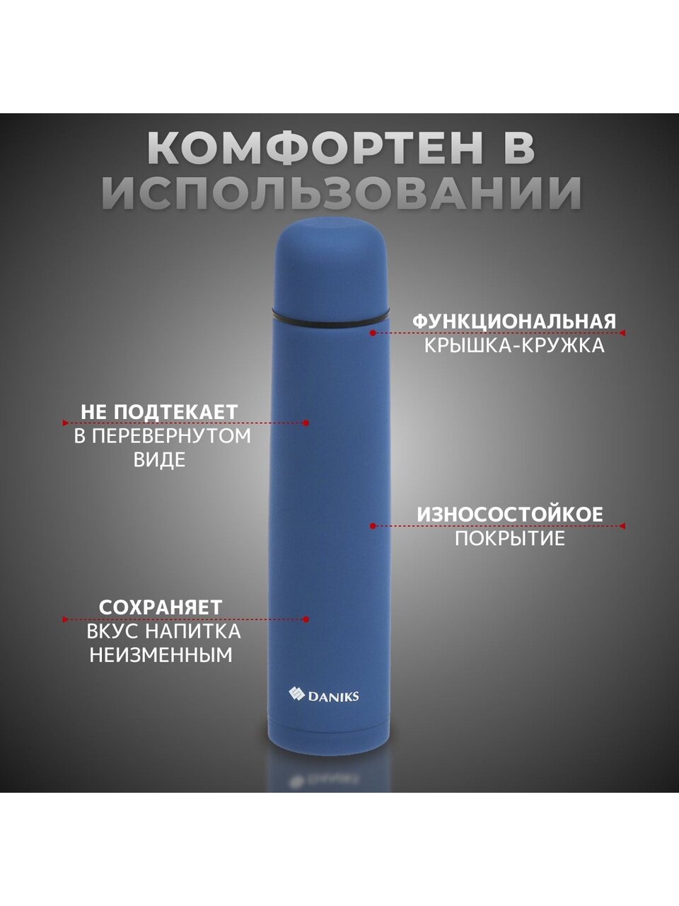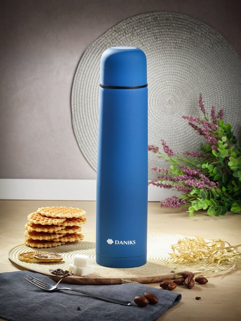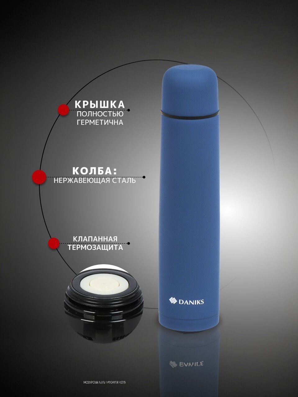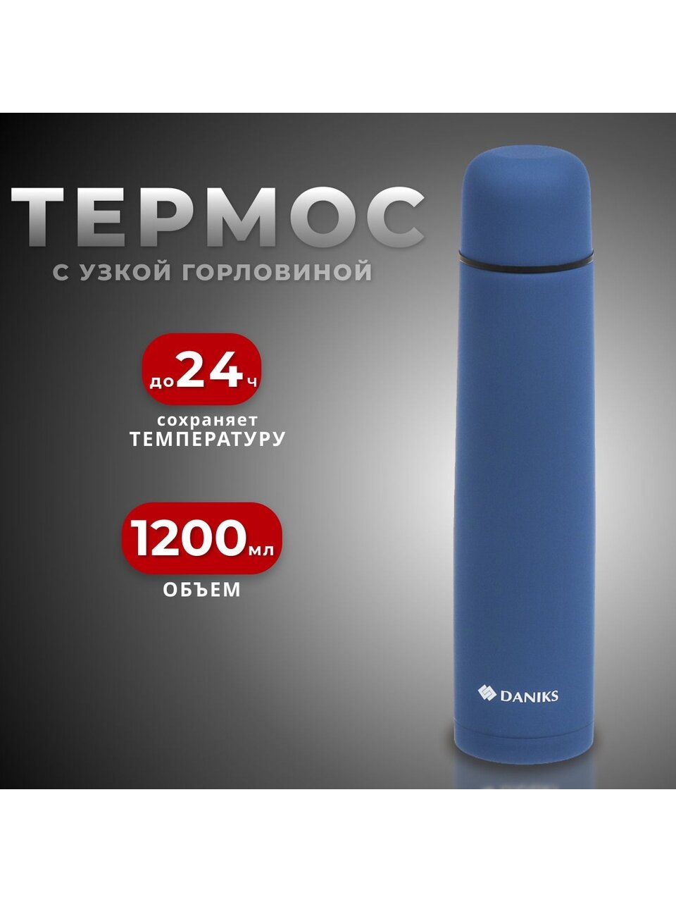 Термос Daniks 1.2 л сапфирово-синий — сохраняет напитки горячими или холодными до 24 часов, не проливается, подходит для путешествий и работы.