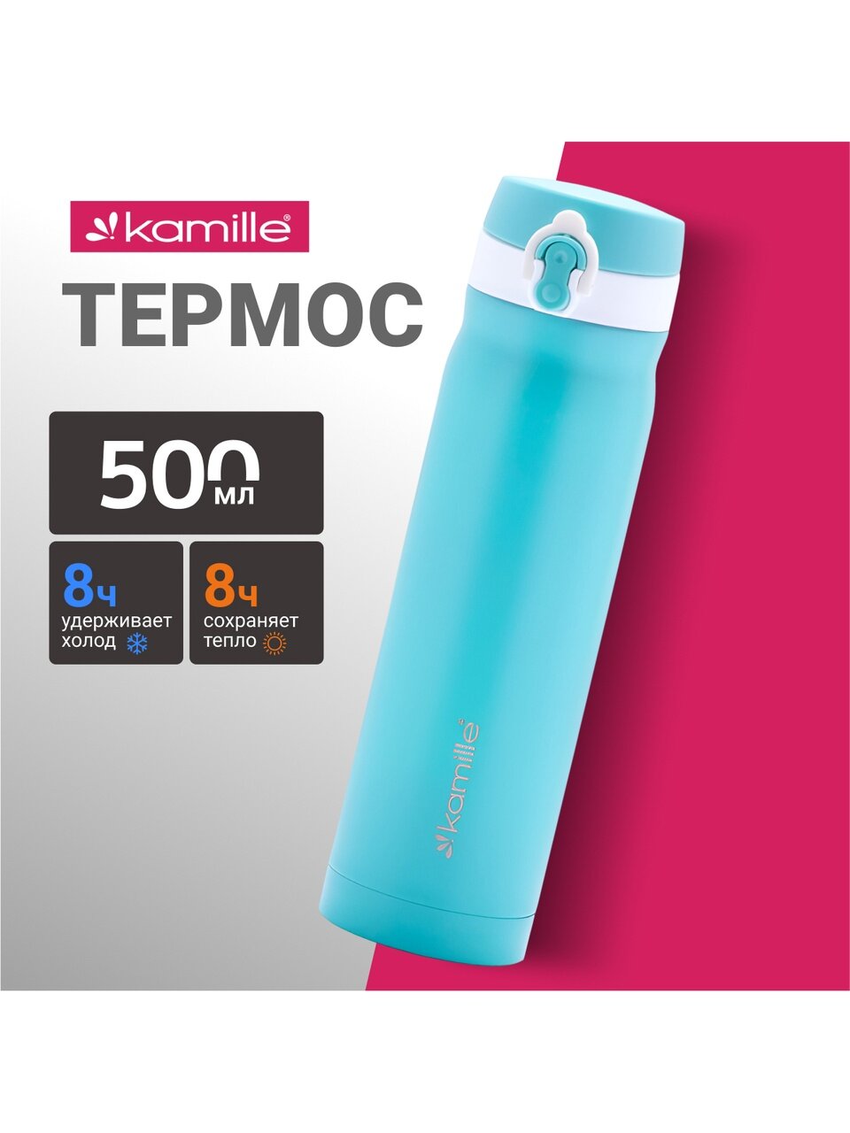 Термос Kamille 0.5 л: стильный и прочный аксессуар из нержавеющей стали для напитков, сохраняет тепло и холод до 8 часов — идеальное решение для города и путешествий.