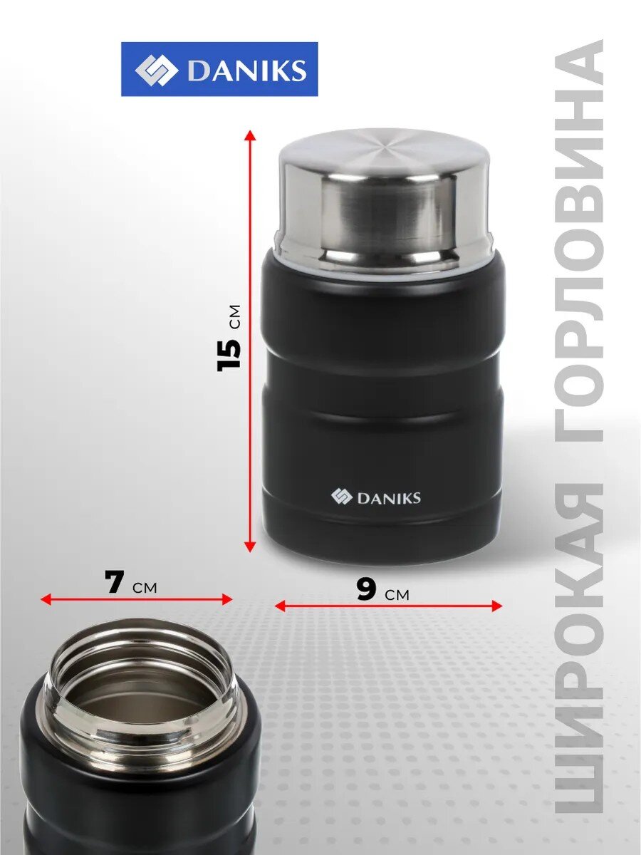 Термос Daniks 0.5 л с широкой горловиной и ложкой — держит тепло и холод до 24 часов, идеален для еды в дороге, на работе и в путешествиях.