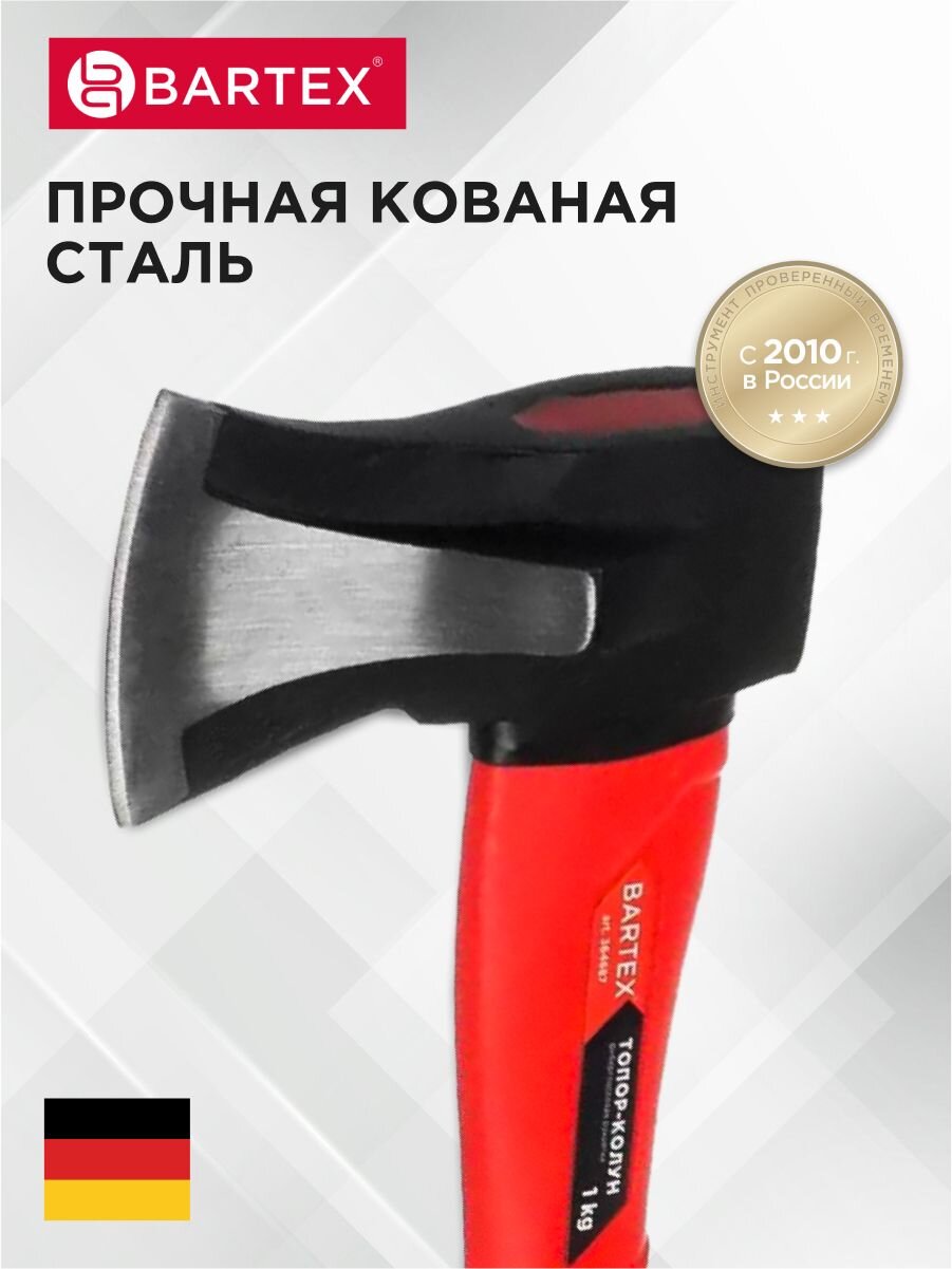Топор-колун Bartex 21819 с клиновидным полотном весом 1 кг и фибергласовым двухкомпонентным топорищем 400 мм позволяет не только колоть, но и рубить древесину. Утолщенная по бокам рабочая часть легко раскалывает бревна и заготовки. Инструмент пригодится профессионалу и частному мастеру.