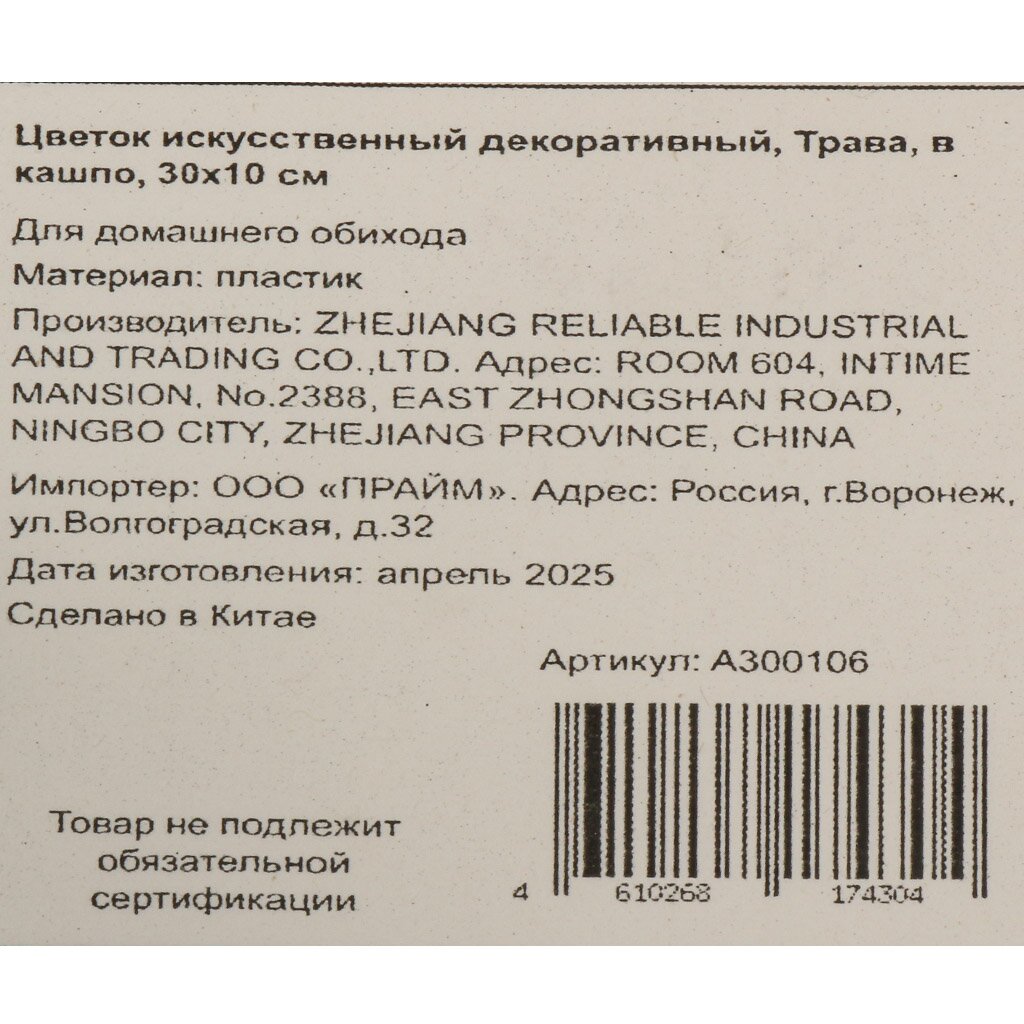 Декоративная искусственная трава в кашпо 30х10 см — стильный акцент для дома и офиса, не требующий ухода. Создайте уют без лишних забот!