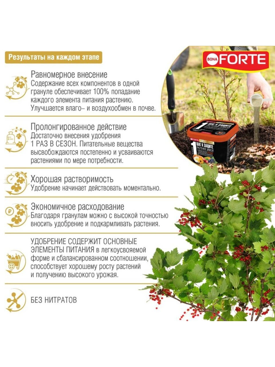 Использовать удобрение можно 1 раз в сезон, что обеспечивает экономичное расходование. А благодаря гранулированной формуле вносить удобрение можно с высокой точностью.