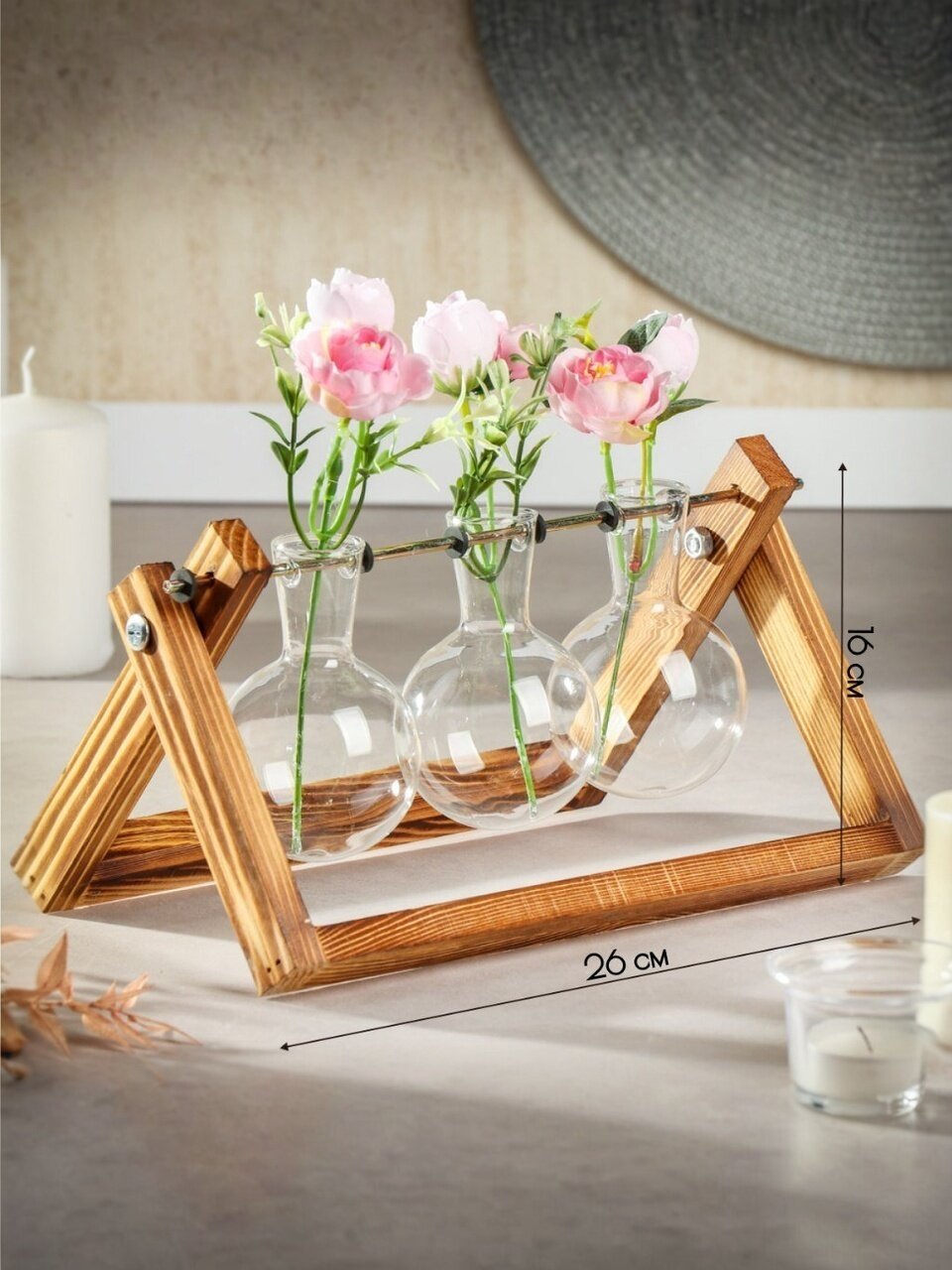 Вы можете приобрести «Ваза стекло, настольная, Y6-10001, 26х16х6 см, 3 колбы, деревянная подставка» и другие товары в нашем интернет-магазине в Армавире по низким ценам и с бесплатным самовывозом.