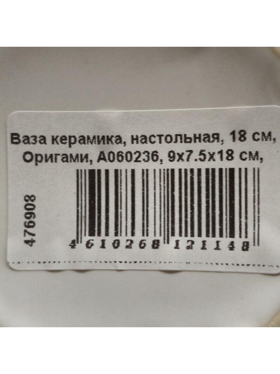 Вы можете приобрести «Ваза керамика, настольная, 18 см, Оригами, A060236, 9х7.5х18 см, белая» и другие товары в нашем интернет-магазине в Клинцах по низким ценам и с бесплатным самовывозом.