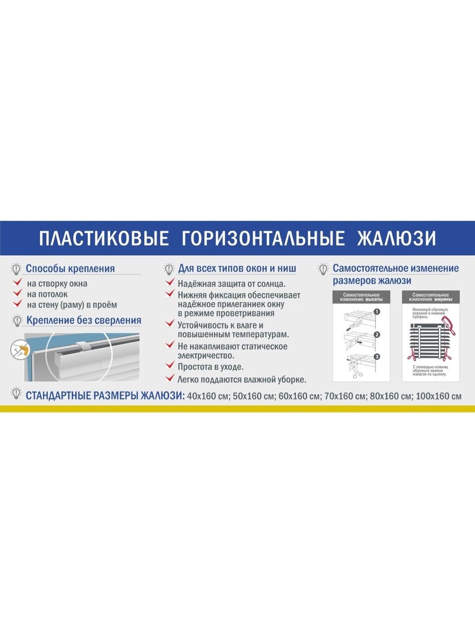 - Возможность самостоятельно изменить ширину и высоту жалюзи.