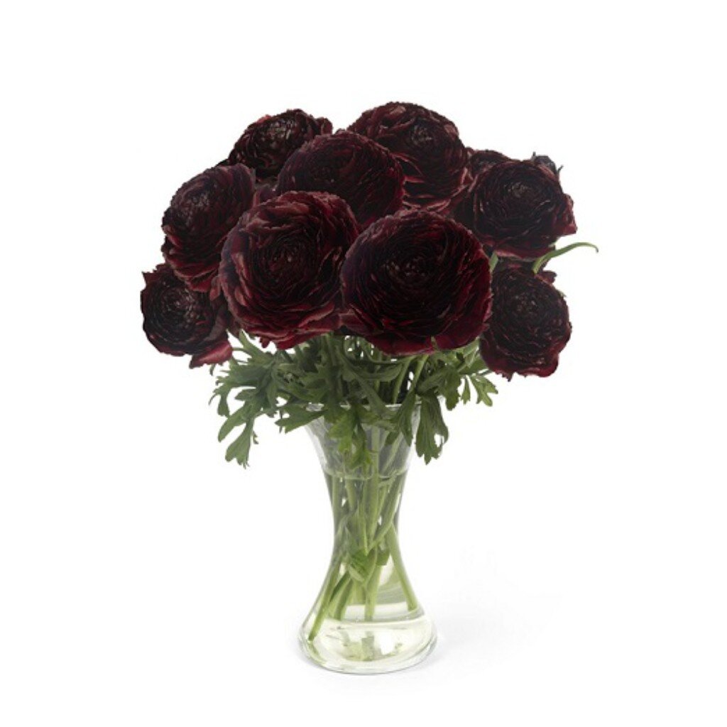 Гибридные лютики "Романс" Перигор обеспечивают длительное цветение, просты в уходе, подходят для оформления клумб, балконов и создания букетов с насыщенным бордовым цветом.